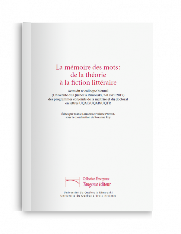 Rimouski/Trois-Rivières, Tangence éditeur, collection « Émergence », 2019 (ISBN 978-2-925015-00-0)